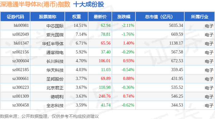 深港通半导体R(港币)(483068)指数十大成份股详情如下: