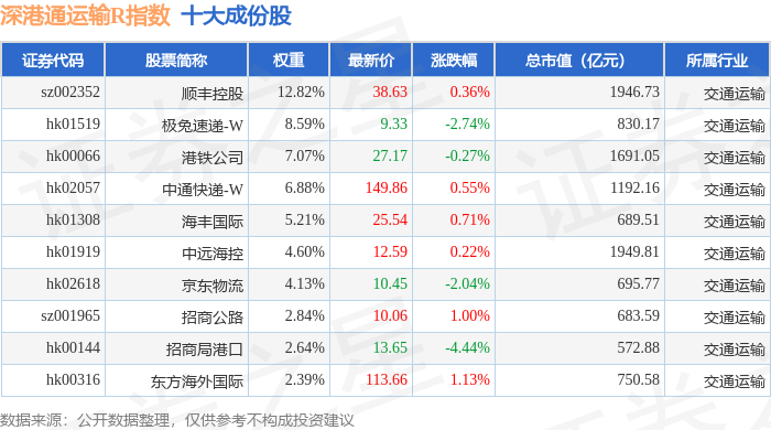 近10日内深港通运输R(483077)指数成份股做了调整,新纳入了2只股票。