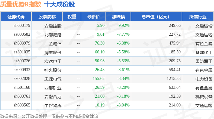 资金流向方面,质量优势R(489017)指数成份股当日主力资金净流出合计33.36亿元,游资资金净流入合计8.89亿元,散户资金净流入合计24.47亿元。成份股资金流向详情见下表: