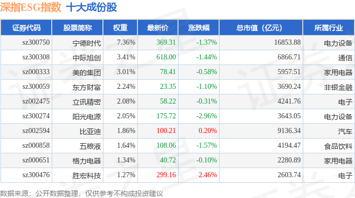 证券之星消息,12月29日,深指ESG(970026)指数报收于14357.86点,跌0.48%,成交4622.93亿元,换手率1.77%。当日该指数成份股中,上涨的有122家,迈为股份以20.0%的涨幅领涨,下跌的有270家,欣旺达以11.39%的跌幅领跌。