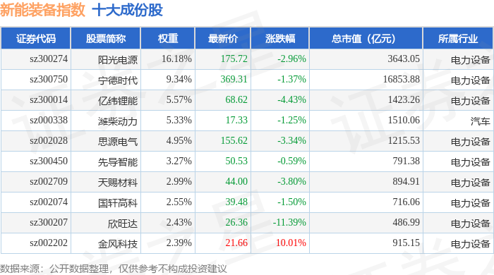 资金流向方面,新能装备(970043)指数成份股当日主力资金净流出合计45.25亿元,游资资金净流入合计5.96亿元,散户资金净流入合计39.29亿元。成份股资金流向详情见下表: