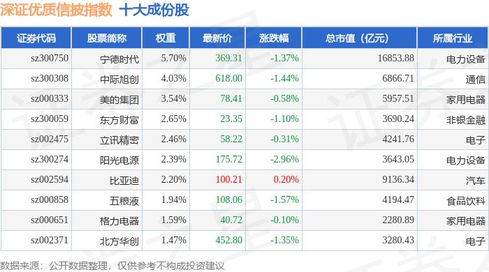 证券之星消息,12月29日,深证优质信披(970065)指数报收于3054.59点,跌0.41%,成交4171.59亿元,换手率1.76%。当日该指数成份股中,上涨的有187家,迈为股份以20.0%的涨幅领涨,下跌的有328家,欣旺达以11.39%的跌幅领跌。