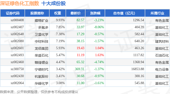 证券之星消息,12月29日,深证绿色化工(970076)指数报收于1766.0点,跌1.21%,成交499.31亿元,换手率2.5%。当日该指数成份股中,上涨的有12家,光威复材以14.86%的涨幅领涨,下跌的有38家,多氟多以8.06%的跌幅领跌。