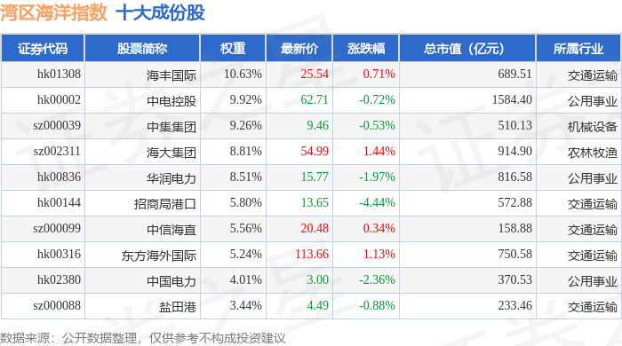 资金流向方面,湾区海洋(980019)指数成份股当日主力资金净流出合计1.27亿元,游资资金净流入合计7067.92万元,散户资金净流入合计5655.16万元。成份股资金流向详情见下表: