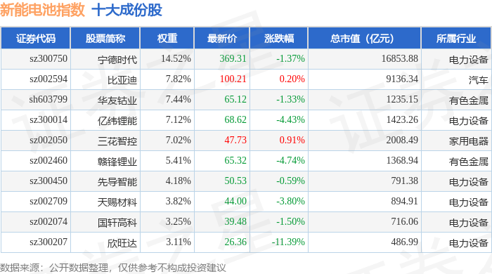 资金流向方面,新能电池(980032)指数成份股当日主力资金净流出合计57.8亿元,游资资金净流入合计12.64亿元,散户资金净流入合计44.65亿元。成份股资金流向详情见下表: