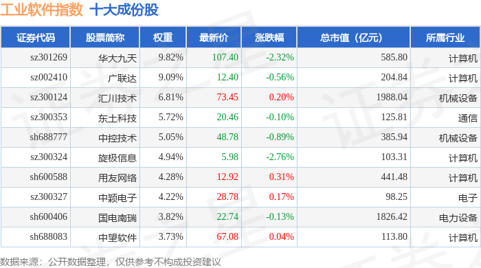 证券之星消息,12月29日,工业软件(980034)指数报收于3172.02点,跌0.42%,成交232.53亿元,换手率2.05%。当日该指数成份股中,上涨的有21家,航天宏图以9.35%的涨幅领涨,下跌的有28家,科瑞技术以4.84%的跌幅领跌。
