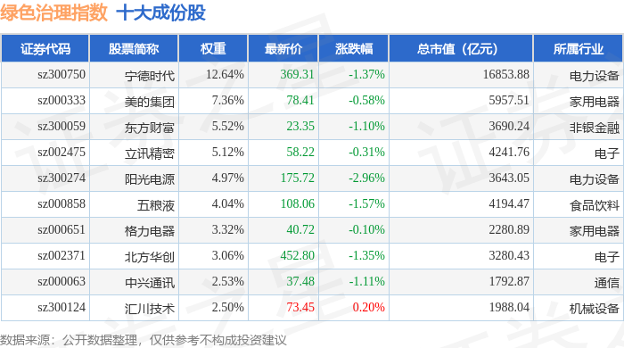 资金流向方面,绿色治理(980058)指数成份股当日主力资金净流出合计64.43亿元,游资资金净流入合计15.75亿元,散户资金净流入合计48.68亿元。成份股资金流向详情见下表: