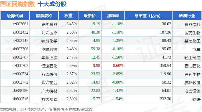 证券之星消息,12月29日,国证回购(980063)指数报收于3365.72点,跌1.34%,成交373.22亿元,换手率0.91%。当日该指数成份股中,上涨的有11家,牧原股份以4.07%的涨幅领涨,下跌的有37家,华联控股以9.99%的跌幅领跌。