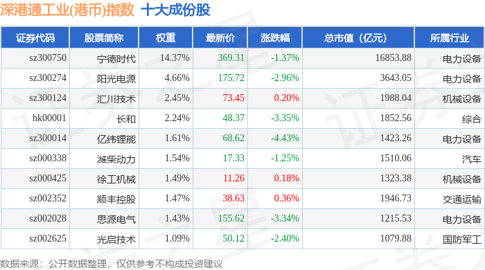 深港通工业(港币)(983018)指数十大成份股详情如下: