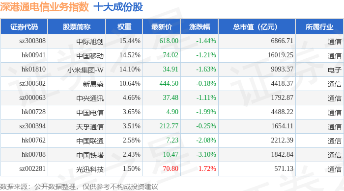 近10日内深港通电信业务(983029)指数成份股做了调整,新纳入了3只股票,剔除了1只股票。