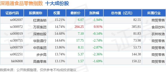 深港通食品零售(983037)指数十大成份股详情如下: