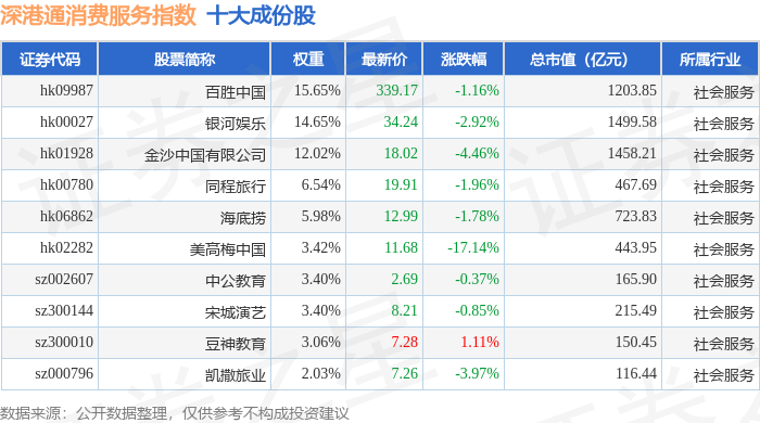 深港通消费服务(983045)指数十大成份股详情如下: