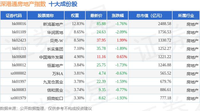 深港通房地产(983071)指数十大成份股详情如下: