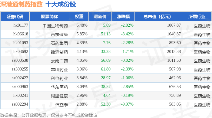 近10日内深港通制药(983079)指数成份股做了调整,新纳入了9只股票。