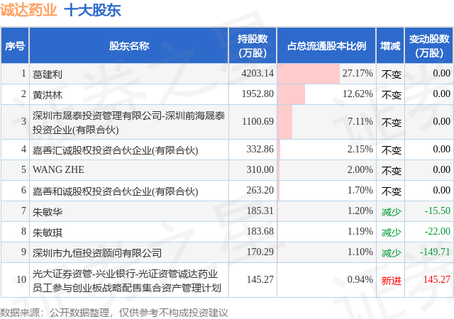 根据诚达药业2025年三季报公布的十大股东详情如下: