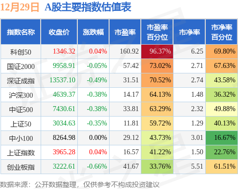 A股主要宽基指数方面,科创50的市盈率百分位较高,为96.37%。而创业板指的市盈率百分位较低,为33.76%。