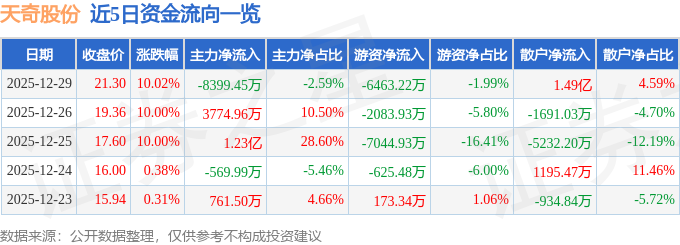12月29日的资金流向数据方面,主力资金净流出8399.45万元,占总成交额2.59%,游资资金净流出6463.22万元,占总成交额1.99%,散户资金净流入1.49亿元,占总成交额4.59%。