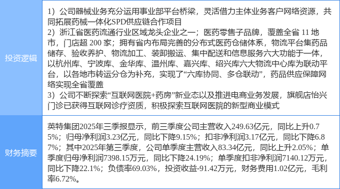 该股为医疗耗材供应链SPD,医药商业,互联网医疗概念热股,当日医疗耗材供应链SPD概念上涨0.32%,医药商业概念上涨0.22%。