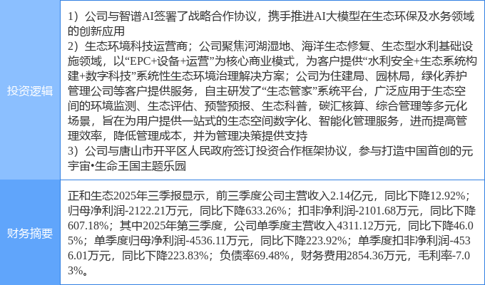 证券之星消息,正和生态12月30日涨停收盘,收盘价14.85元。该股于9点31分涨停,3次打开涨停,截止收盘封单资金为1756.64万元,占其流通市值1.41%。