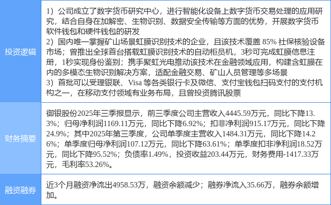 该股为虹膜识别,腾讯概念股,数字人民币概念热股,当日虹膜识别概念上涨2.57%,腾讯概念股概念上涨1.04%,数字人民币概念上涨0.77%。