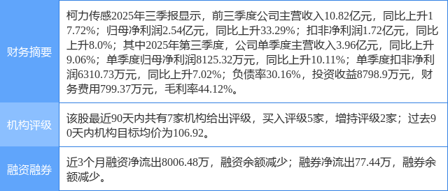 今日柯力传感(603662)涨5.35%,收盘报70.33元。