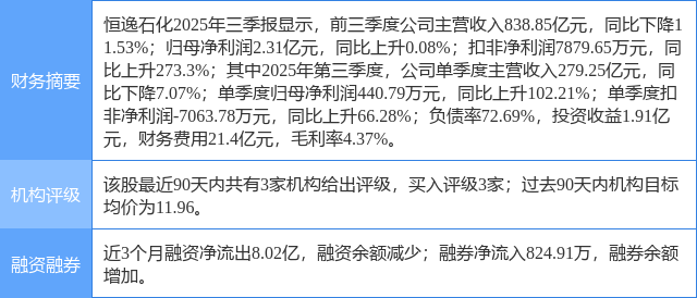 今日恒逸石化(000703)涨10.02%,收盘报10.98元。