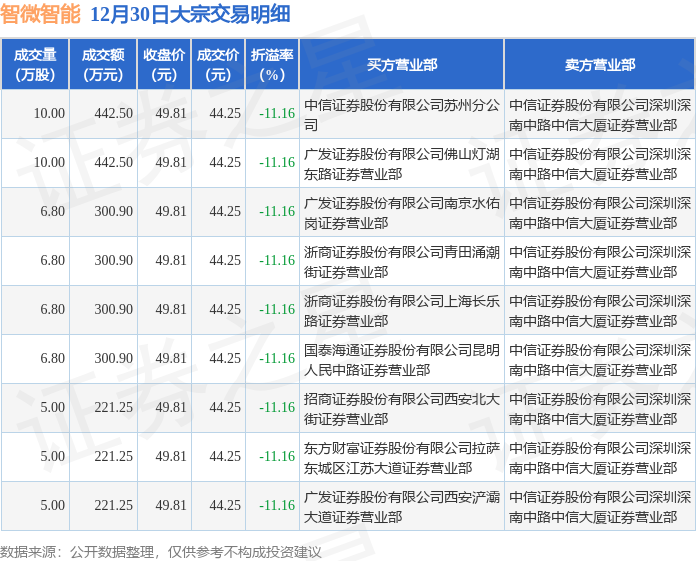 证券之星消息,12月30日智微智能发生大宗交易,交易数据如下:
