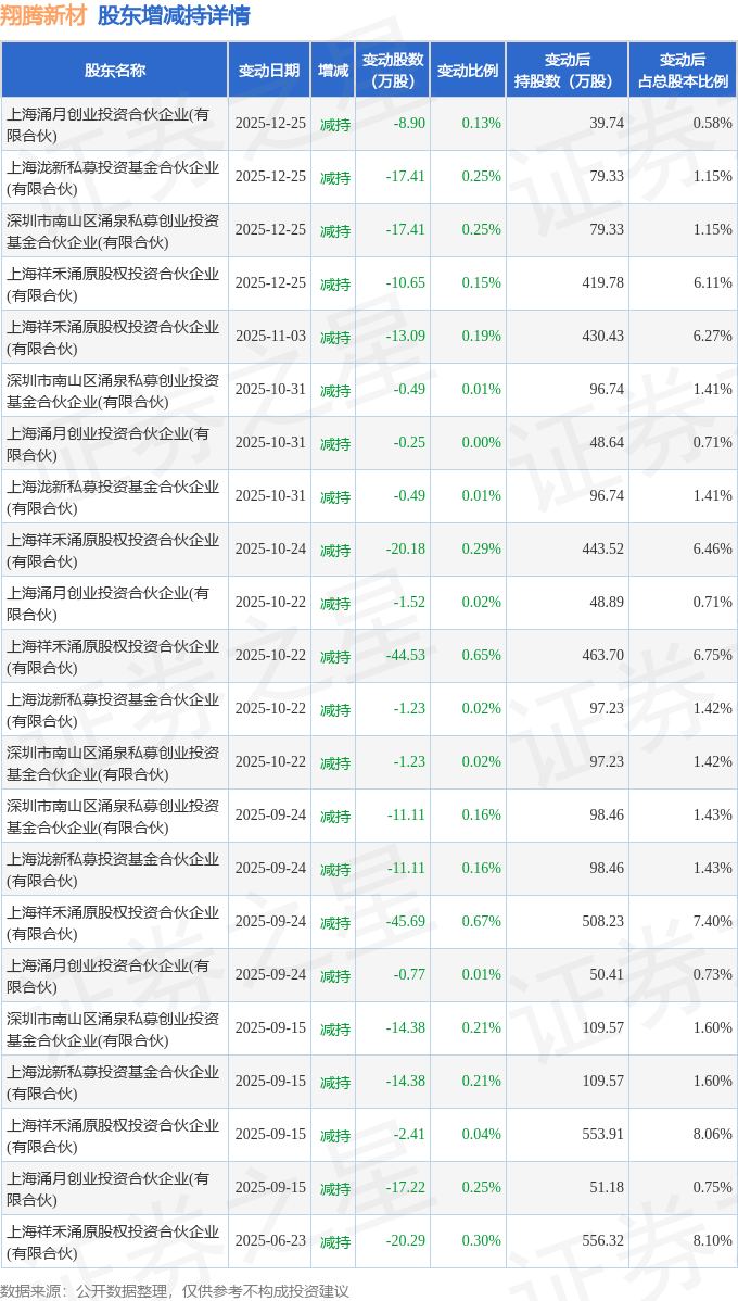 该股近半年内有股东持股变动,合计净减持274.75万股,股东增减持明细如下表: