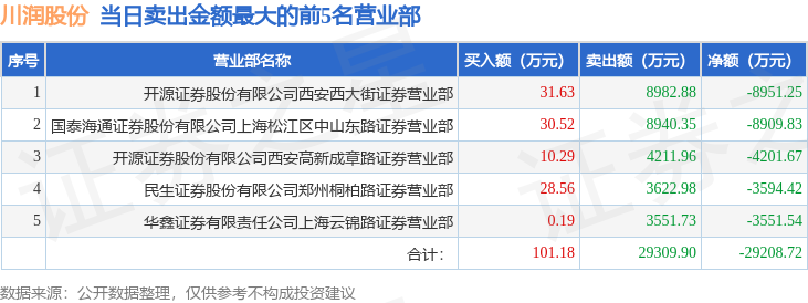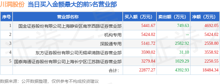 证券之星消息,沪深交易所2025年12月30日公布的交易公开信息显示,川润股份(002272)因日换手率达到20%的前5只证券登上龙虎榜。此次是近5个交易日内第1次上榜。