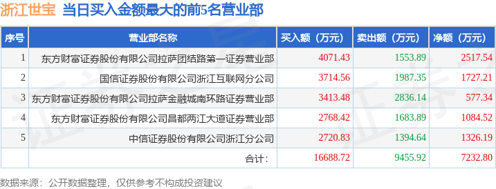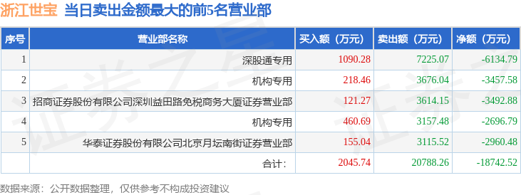 证券之星消息,沪深交易所2025年12月30日公布的交易公开信息显示,浙江世宝(002703)因日跌幅偏离值达到7%的前5只证券登上龙虎榜。此次是近5个交易日内第3次上榜。