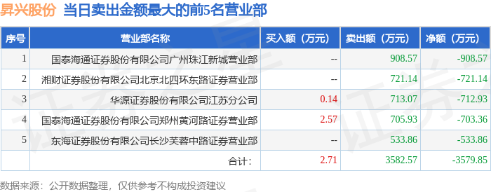 证券之星消息,沪深交易所2025年12月30日公布的交易公开信息显示,昇兴股份(002752)因日跌幅偏离值达到7%的前5只证券登上龙虎榜。此次是近5个交易日内第1次上榜。