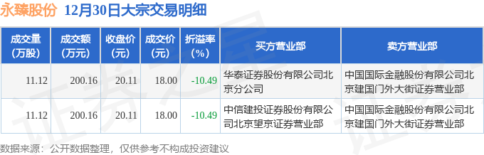 证券之星消息,12月30日永臻股份发生大宗交易,交易数据如下: