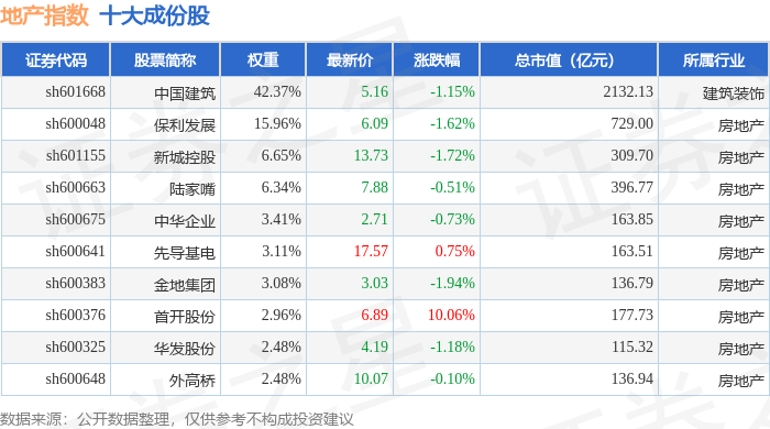地产指数(000006)十大成份股详情如下: