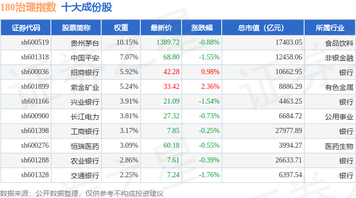 180治理(000021)指数十大成份股详情如下: