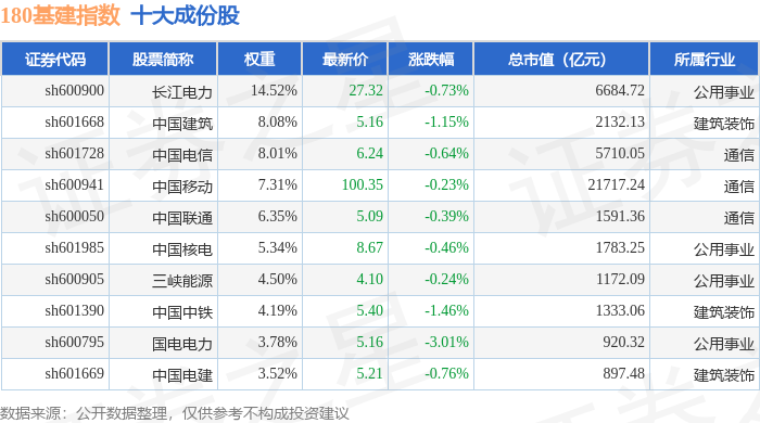 证券之星消息,12月30日,180基建(000025)指数报收于1759.08点,跌0.68%,成交274.83亿元,换手率0.54%。当日该指数成份股中,上涨的有3家,中国卫通以8.27%的涨幅领涨,下跌的有29家,华能国际以3.78%的跌幅领跌。