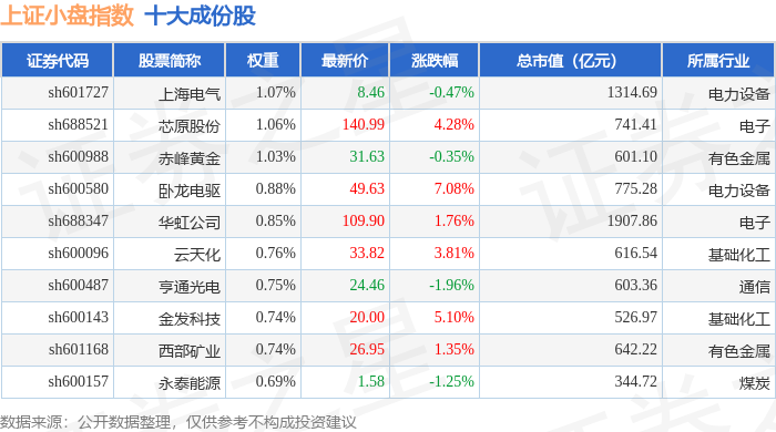 上证小盘(000045)指数十大成份股详情如下: