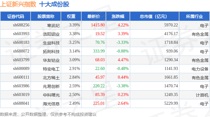 证券之星消息,12月30日,上证新兴(000067)指数报收于8940.31点,涨0.9%,成交1265.94亿元,换手率1.24%。当日该指数成份股中,上涨的有25家,中国卫通以8.27%的涨幅领涨,下跌的有24家,兆易创新以3.38%的跌幅领跌。