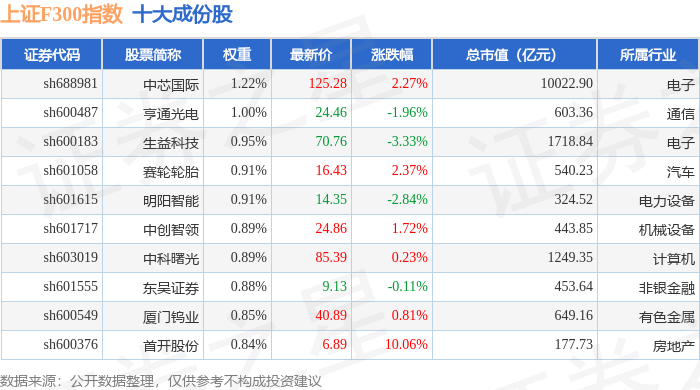 证券之星消息,12月30日,上证F300(000099)指数报收于9108.66点,涨0.0%,成交1733.31亿元,换手率1.41%。当日该指数成份股中,上涨的有93家,首开股份以10.06%的涨幅领涨,下跌的有191家,九丰能源以7.23%的跌幅领跌。