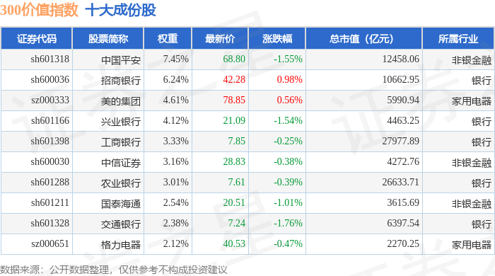 300价值(000919)指数十大成份股详情如下: