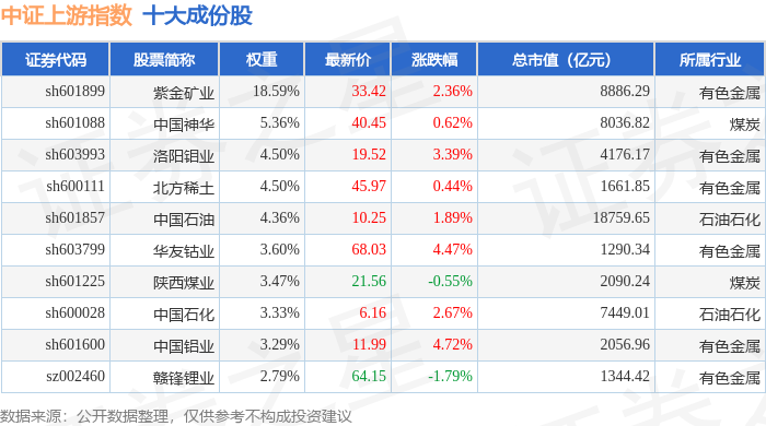 证券之星消息,12月30日,中证上游(000961)指数报收于5012.89点,涨1.63%,成交902.11亿元,换手率0.84%。当日该指数成份股中,上涨的有33家,云铝股份以6.82%的涨幅领涨,下跌的有16家,菲利华以3.08%的跌幅领跌。