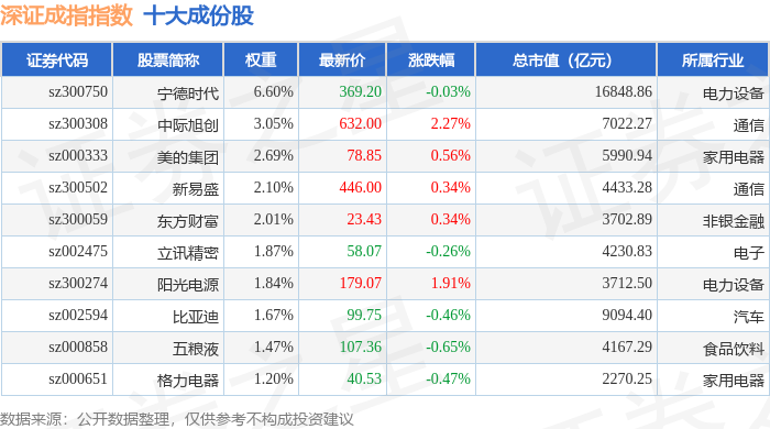 资金流向方面,深证成指(399001)指数成份股当日主力资金净流出合计114.14亿元,游资资金净流出合计8.41亿元,散户资金净流入合计122.55亿元。成份股资金流向详情见下表: