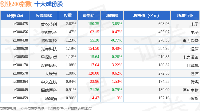 创业200(399019)指数十大成份股详情如下: