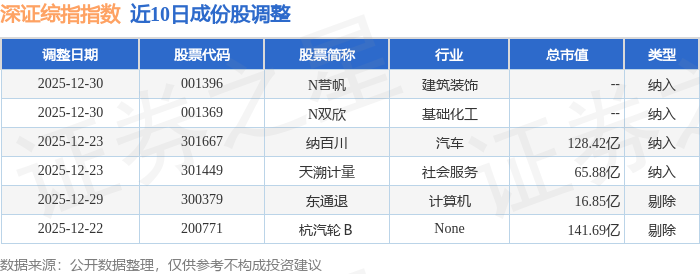 近10日内深证综指(399106)指数成份股做了调整,新纳入了4只股票,剔除了2只股票。