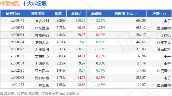 批零指数(399236)十大成份股详情如下: