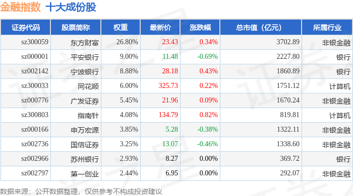 证券之星消息,12月30日,金融指数(399240)报收于1597.54点,跌0.02%,成交205.13亿元,换手率0.83%。当日该指数成份股中,上涨的有10家,华林证券以3.61%的涨幅领涨,下跌的有18家,海德股份以3.99%的跌幅领跌。