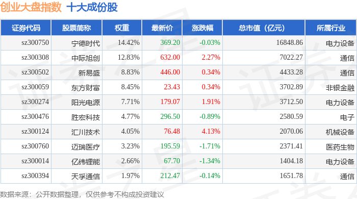 证券之星消息,12月30日,创业大盘(399293)指数报收于6603.72点,涨0.84%,成交1289.39亿元,换手率2.12%。当日该指数成份股中,上涨的有29家,长盈精密以9.49%的涨幅领涨,下跌的有20家,大族数控以3.5%的跌幅领跌。