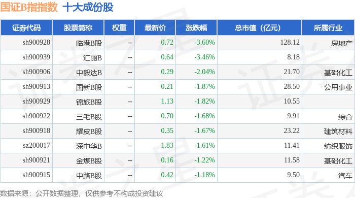 国证B指(399318)指数十大成份股详情如下: