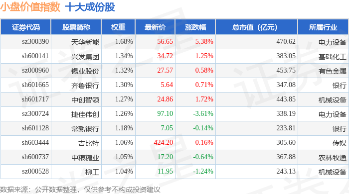小盘价值(399377)指数十大成份股详情如下: