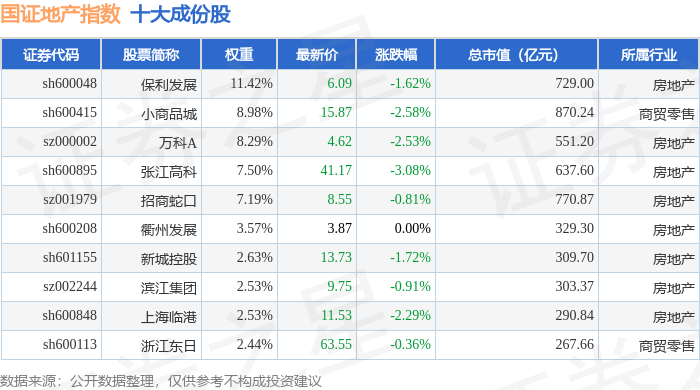 国证地产(399393)指数十大成份股详情如下: