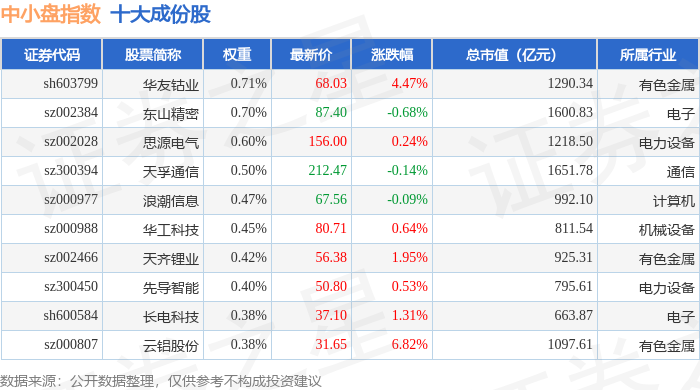 中小盘(399401)指数十大成份股详情如下: